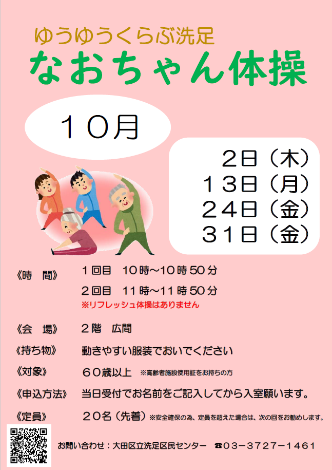 ゆうゆうくらぶ【10月】なおちゃん体操日程