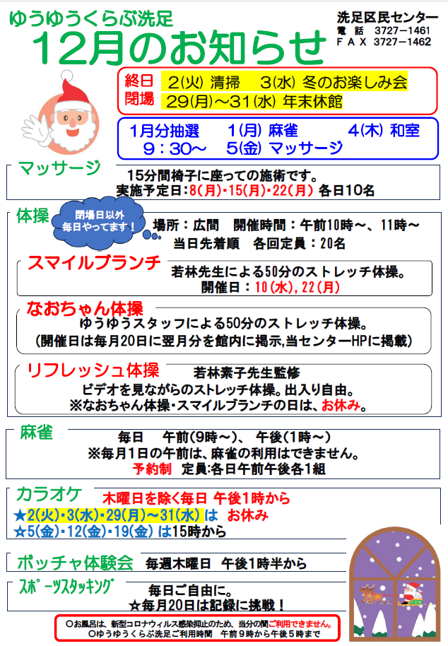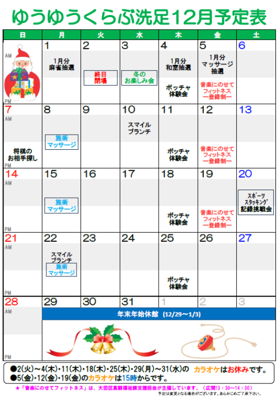 【ゆうゆうくらぶ12月の月のお知らせ】(こちらからダウンロードできます。)