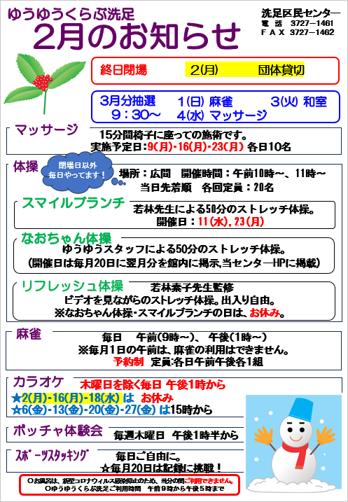 2月のお知らせ