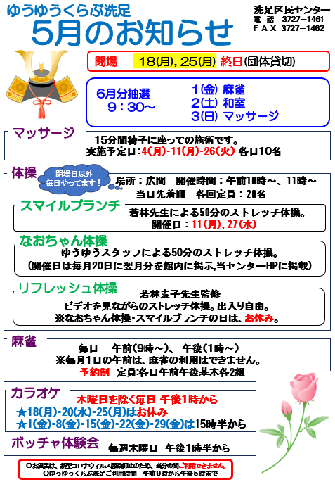 ゆうゆうくらぶ洗足5月のお知らせ(令和8年度)