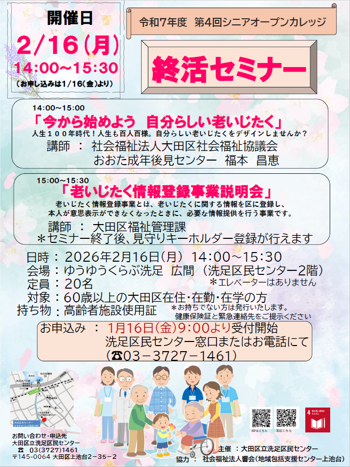 【1/16より受付開始】第4回シニアオープンカレッジ「終活セミナー」