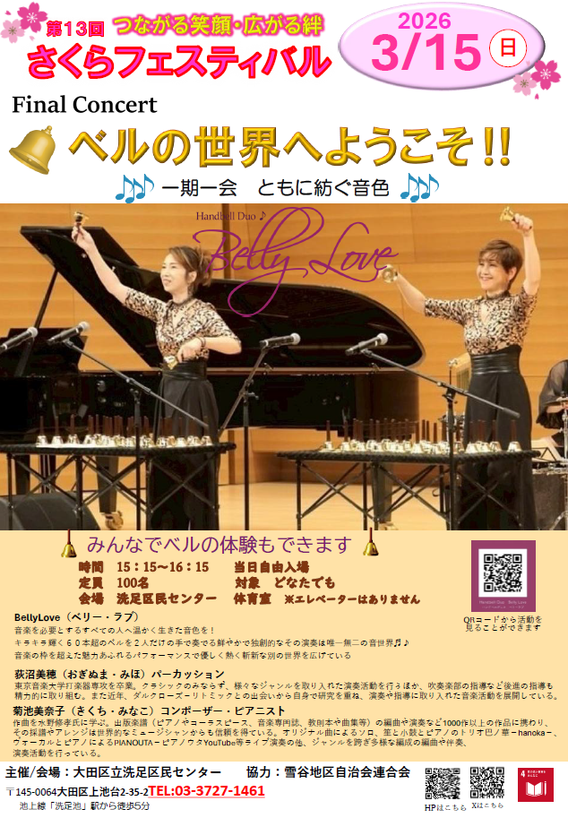 | 講座名 | 第13回さくらフェスティバル Final Concert ベルの世界へようこそ! |