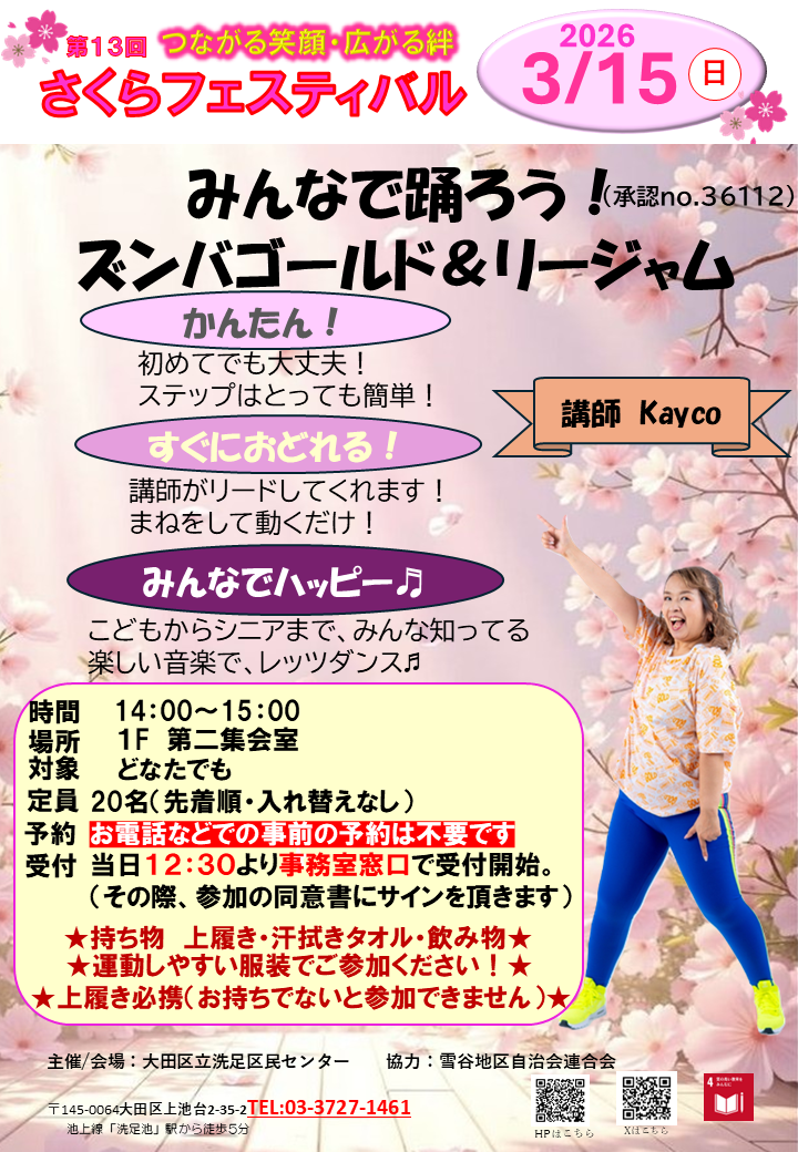 【終了】第13回さくらフェスティバル 「みんなで踊ろう!ズンバゴールドとリージャム」